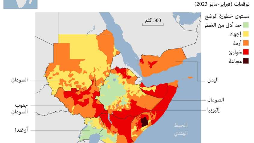 بين هؤلاء الاشخاص ال 48 مليونا، هناك ستة ملايين في حالة “طارئة” من انعدام الأمن الغذائي (المرحلة 4 من التصنيف المرحلي المتكامل للأمن الغذائي) و129 ألفا في وضع “الكارثة” (المرحلة 5)، وهو المستوى الأقصى.